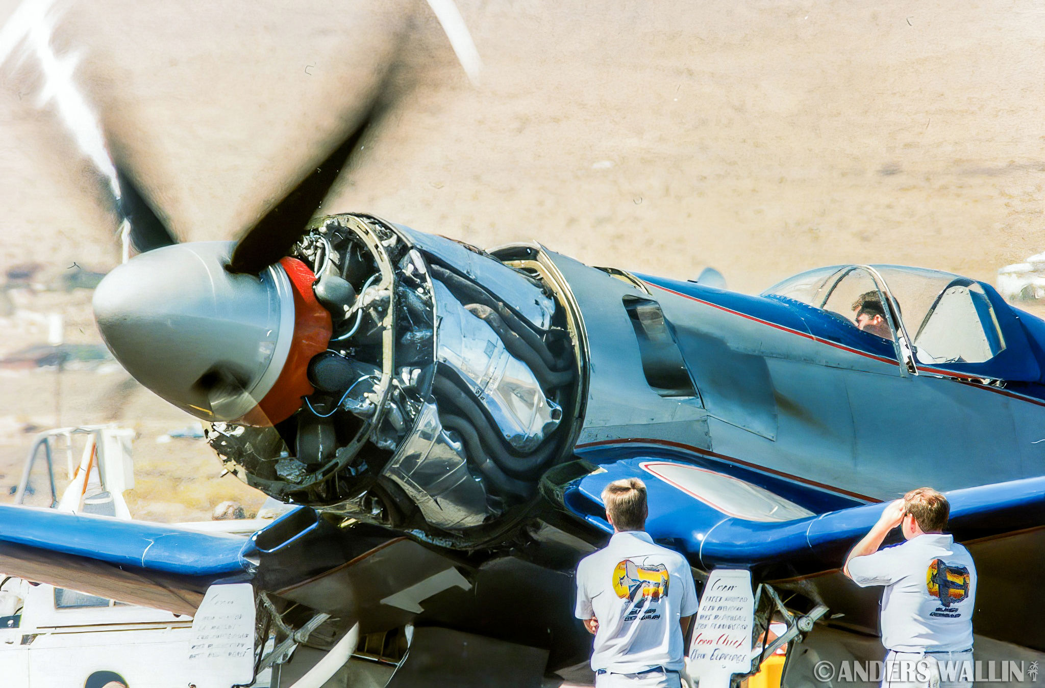 The aircraft rolled inverted and crashed vertically into the desert, bringing the racing career of this legendary Super Corsair to an end.